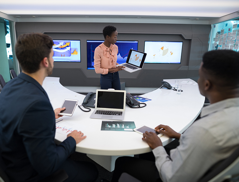 Whether it’s a high-profile boardroom discussion or a quick catch-up in a small meeting space, our Webex Rooms are built to make every interaction effortless. The technology fades into the background, while your team enjoys smooth scheduling, easy content sharing, natural, true-to-life sound, and vivid visuals - that keep everyone engaged.